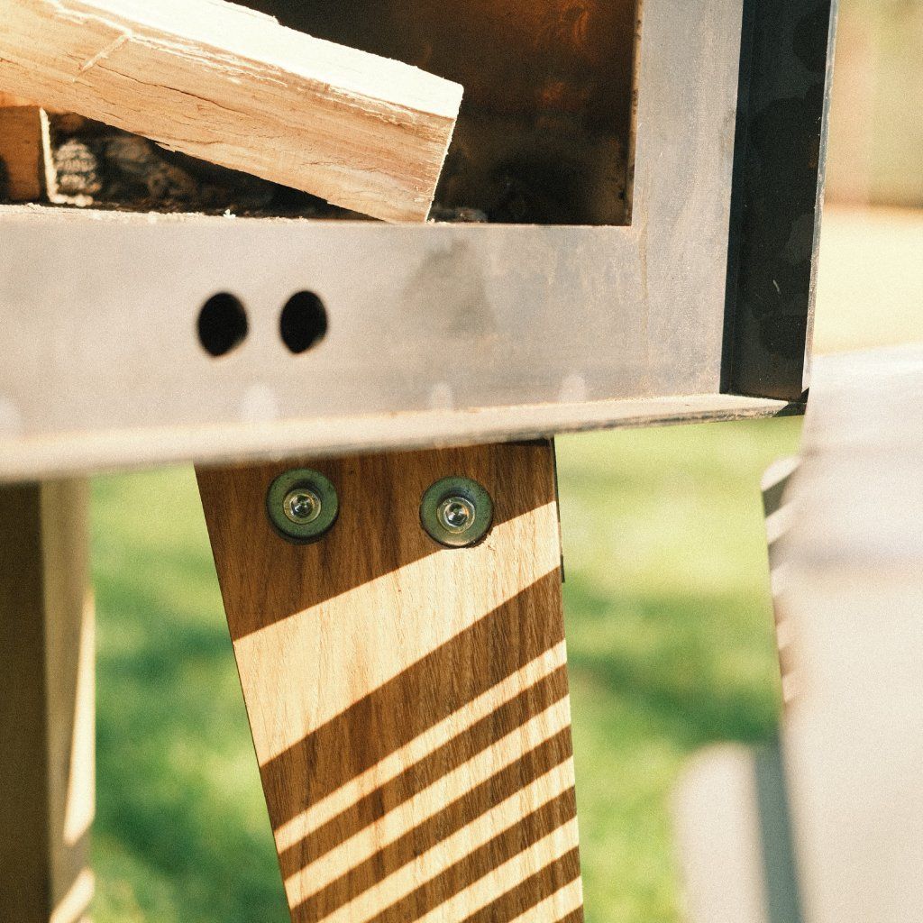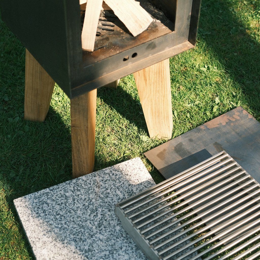 | Materiály: | Corten, Dubové dřevo, Cordierit |