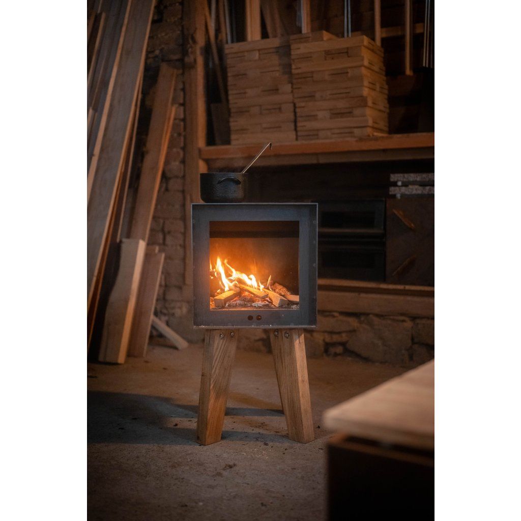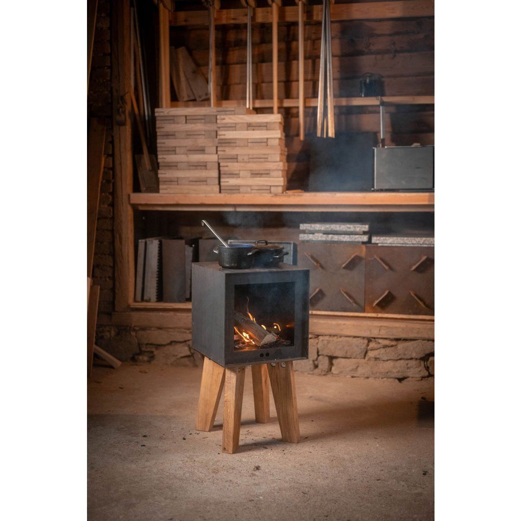 Pec si zachovává charakteristické rysi svého předchůdce. Kvalitní dubové nohy, elegantní formu a cortenové tělo.