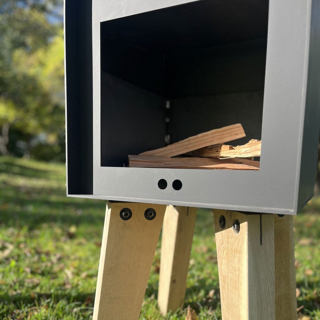 Spojením vášně pro pizzu a produktového designu vznikla v naší stodole malá přenosná pizza pec na dřevo. Postupným odlaďováním jsme se dostali k finální produkční verzi. Rozměry pece jsou 42cm x 42cm a výška 100cm. V horní části jsou osazeny dva pečící kameny, které zaručují ideální předání tepla. Velikost otvoru pro vkládání pizzy je 30 cm. Pec váží 70kg a jen tak něco ji nerozhází.